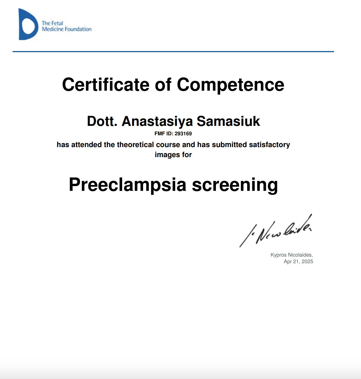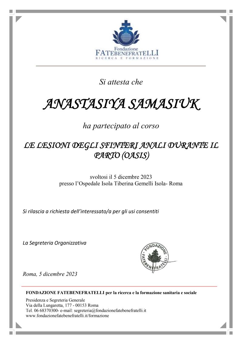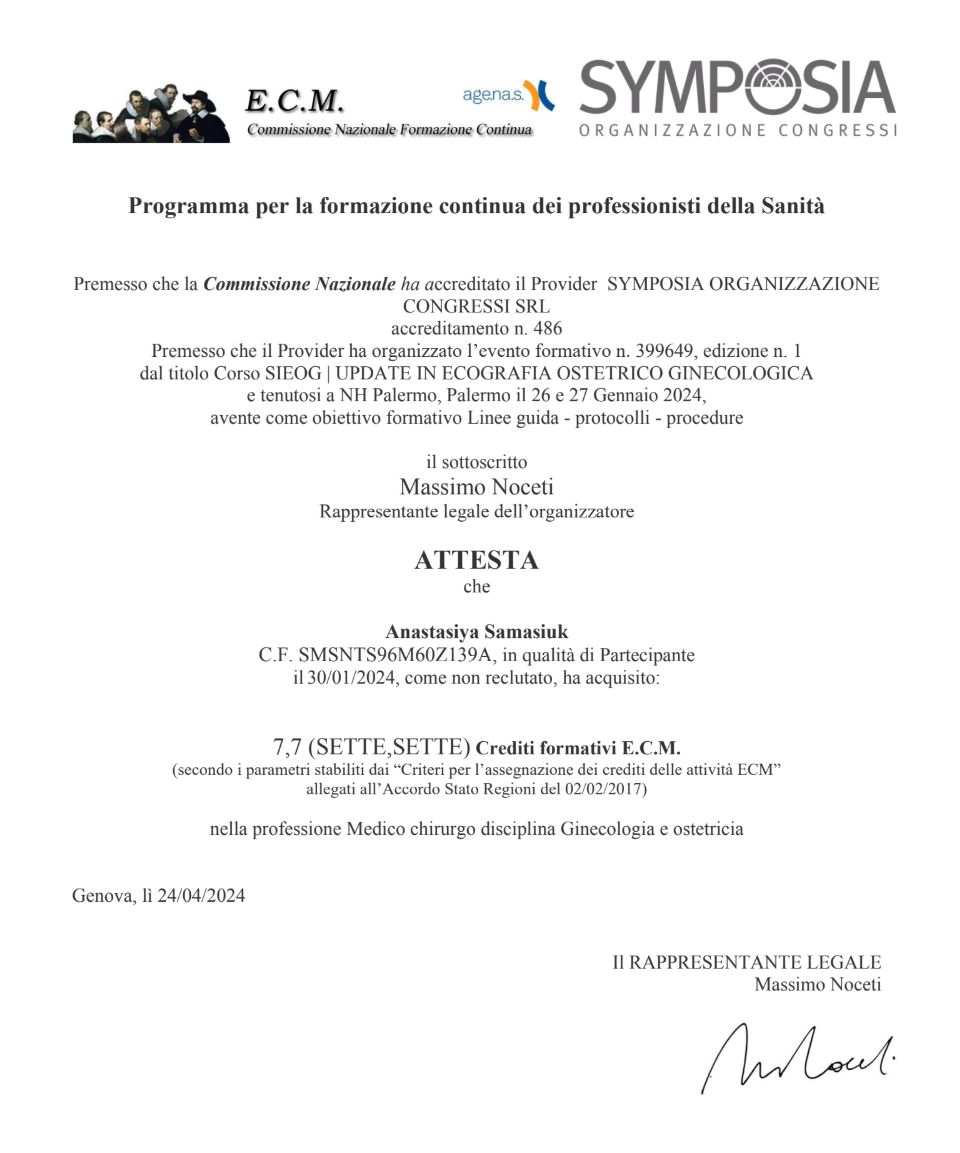 Sono la Dott.ssa Anastasiya Samasiuk, specialista in Ginecologia e Ostetricia.